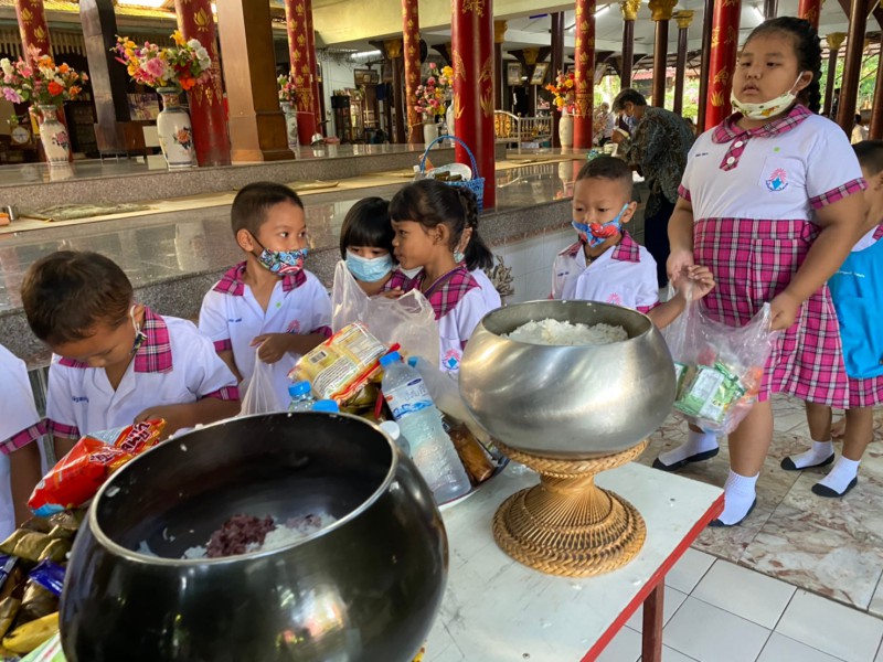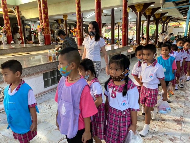 โรงเรียนวัดสุวรรณจินดาราม จัดกิจกรรมจูงลูกเข้าวัด ในโครงการส่งเสริมคุณธรรม จริยธรรม และค่านิยมอันพึงประสงค์ โดยนำนักเรียนร่วมทำบุญที่วัดสุวรรณจินดารามทุกวันพระ มีการเวียนกันไปทำบุญเป็นระดับชั้น ตั้งแต่ชั้น ป.1- ป.6 ซึ่งการจัดกิจกรรมครั้งที่ 4 นี้ ตรงกับวันพุธที่ 2 กันยายน 2563 คุณครูประจำชั้นอนุบาล ได้นำนักเรียนไปร่วมทำบุญ