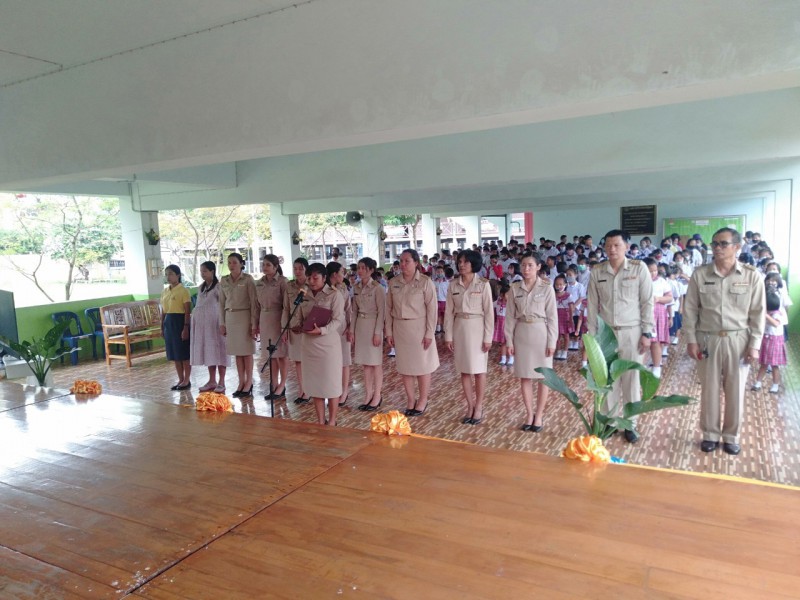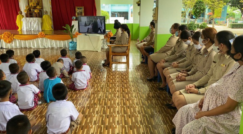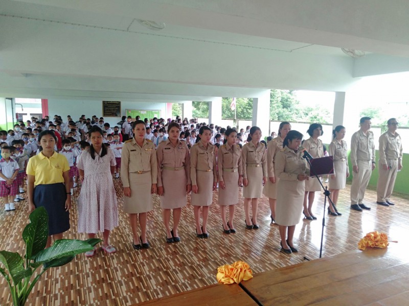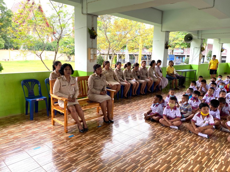 นางทองสุข แดงสังวาลย์ คณะครู และนักเรียนโรงเรียนวัดสุวรรณจินดาราม ร่วมน้อมเกล้ารำลึกวันคล้ายวันสวรรคตในหลวง "ร.9" ธ สถิตในดวงใจไทยตราบนิจนิรันดร์