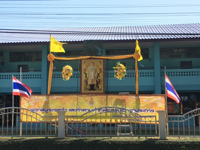 วันเสาร์ที่ 5 ธันวาคม พ.ศ.2563 ผู้บริหารและคณะครูร่วมทำบุญตักบาตร ณ วัดสุวรรณจินดาราม และประดับพระบรมฉายาลักษณ์ ธงประจำรัชกาล บริเวณหน้าโรงเรียน เนื่องในวันคล้ายวันพระราชสมภพของในหลวง รัชกาลที่ 9และวันชาติ