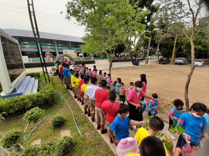 และนักเรียนชั้นอนุบาล 3 โดย ท่าน ผอ.ทองสุข แดงสังวาล พานักเรียนที่จบการศึกษาเข้ากราบลาเจ้าอาวาส