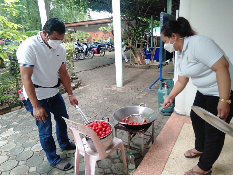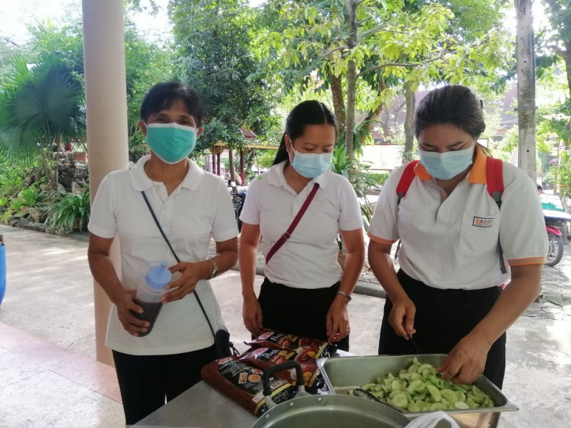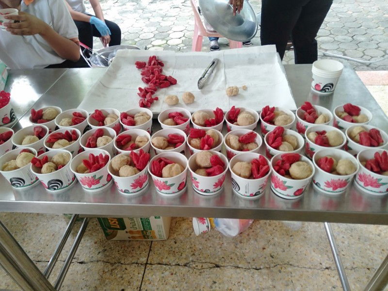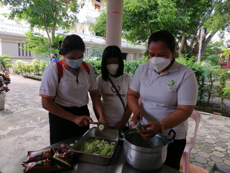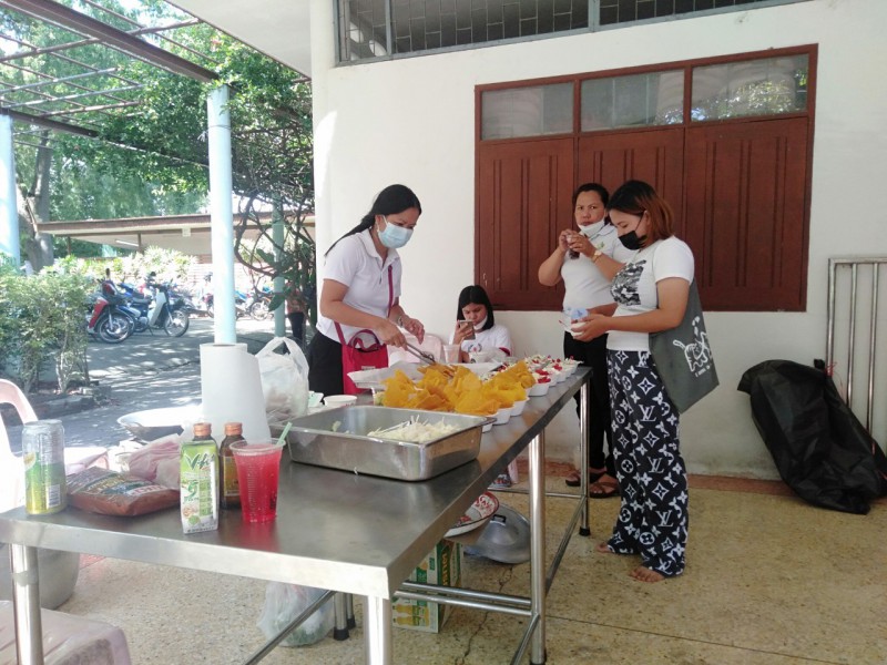 ทางโรงเรียนจึงร่วมเป็นเจ้าภาพทอดกฐิน 1 กอง จำนวนเงิน 2564 บาท ร่วมจัดโรงทาน ลูกชิ้นทอด และน้ำดื่ม