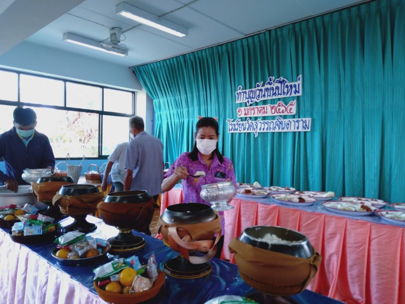 วันเสาร์ที่ ๑ มกราคม พ.ศ. ๒๕๖๕ โรงเรียนวัดสุวรรณจินดาราม นำโดยนางทองสุข แดงสังวาลย์ ผู้อำนวยการโรงเรียน พร้อมด้วยคณะครูและบุคลากรทางการศึกษา ได้จัดงานทำบุญขึ้นปีใหม่และทอดผ้าป่าสามัคคีประจำปี 2565 ในการนี้ได้รับความร่วมมือจากผู้บริหาร คณะครู ผู้ปกครอง ชุมชน ได้มีส่วนร่วมในการทอดผ้าป่าสามัคคี เพื่อนำไปสมทบทุนยกฐานหลวงพ่อดอกไม้พระประจำโรงเรียนวัดสุวรรณจินดาราม