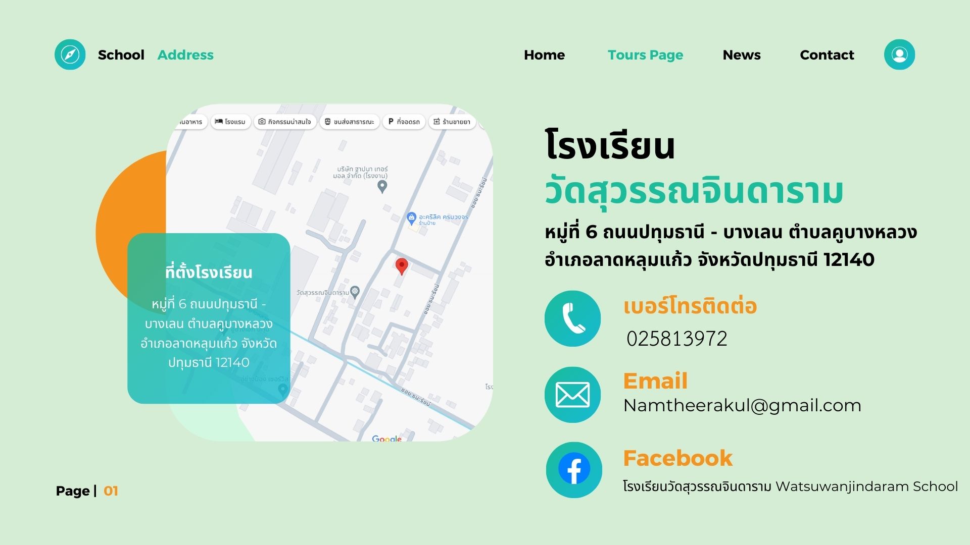 โรงเรียนวัดสุวรรณจินดาราม หมู่ที่ 6 ถนนปทุมธานี - บางเลน ตำบลคูบางหลวง อำเภอลาดหลุมแก้ว จังหวัดปทุมธานี 12140